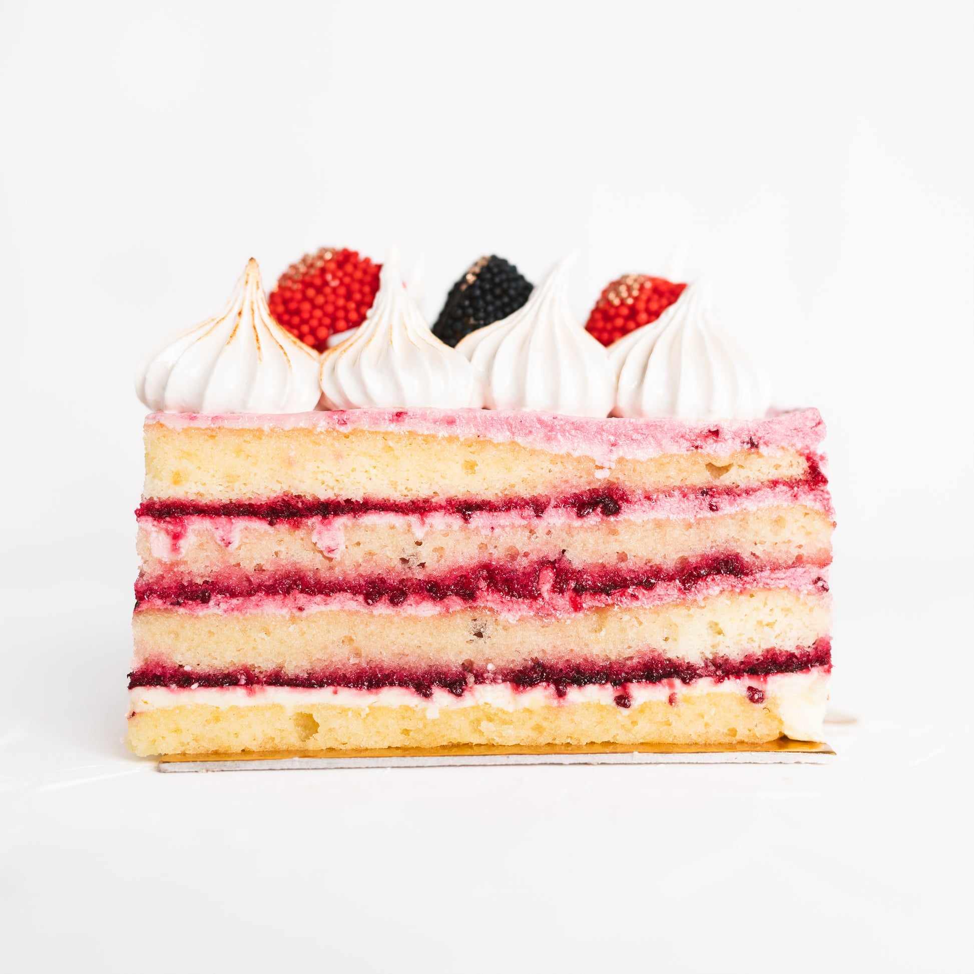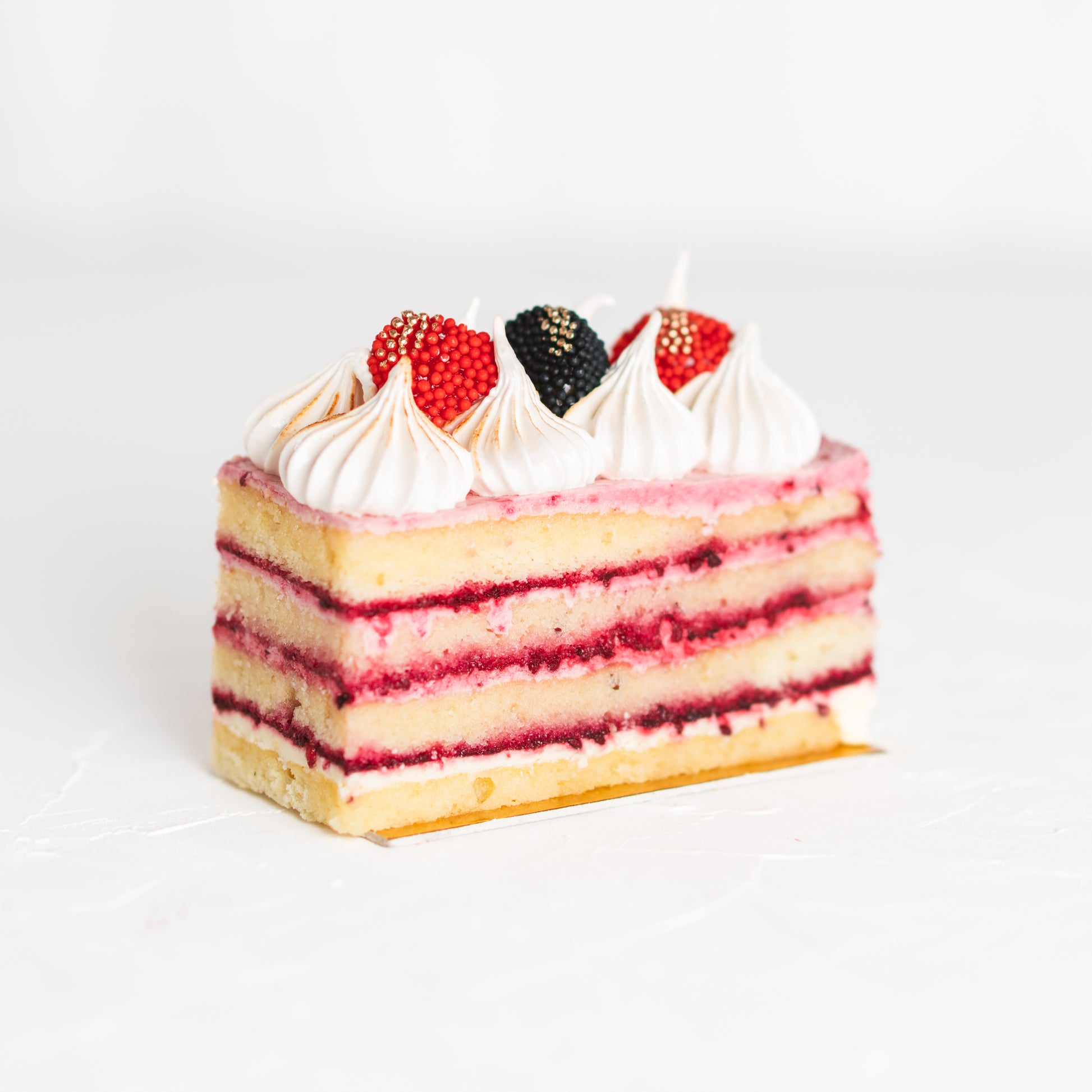 Una variación de “OPERA CAKE” con muchísimo sabor entre capas de buttercream de mora y biscochuelo de vino blanco, definitivamente un sabor que querrás probar!